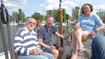Am Sonntag hat uns dann das Gewitter erwischt. Es hat uns nicht die angedrohten Böen beschert, aber den Regen! Es hat geschüttet und Blasen auf der See erzeugt. Nach einer halben Stunde war das Gewitter durch und wir hatten einen Schönwetterabschluß auf dem Dänholm, alle Segel konnten trocken verstaut werden.